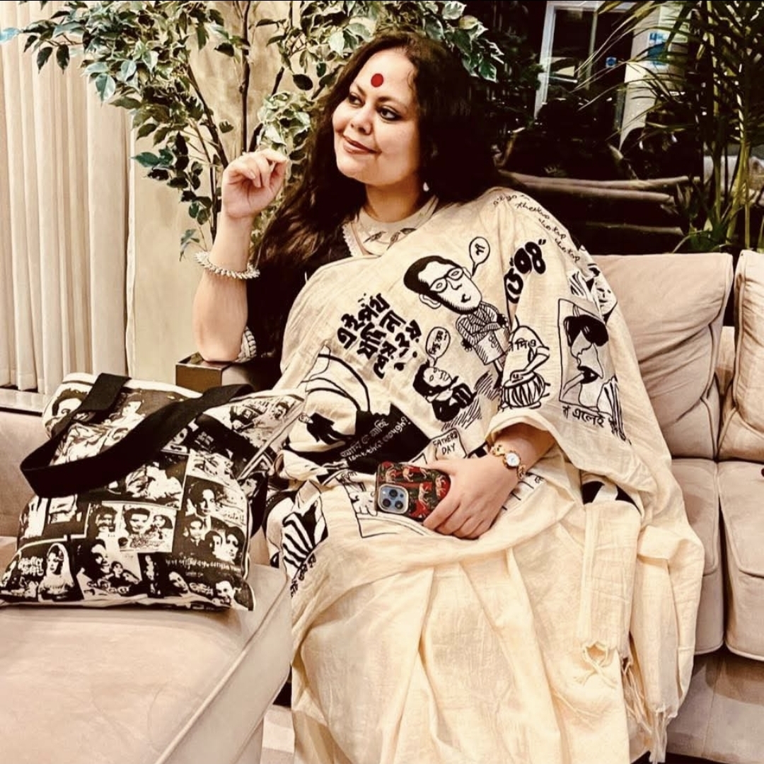 Your Daffodil Saree was the talk of the concert, Mr Jalota also asked about you and the creation. Flaunting Myosutra's Daffodil saree.