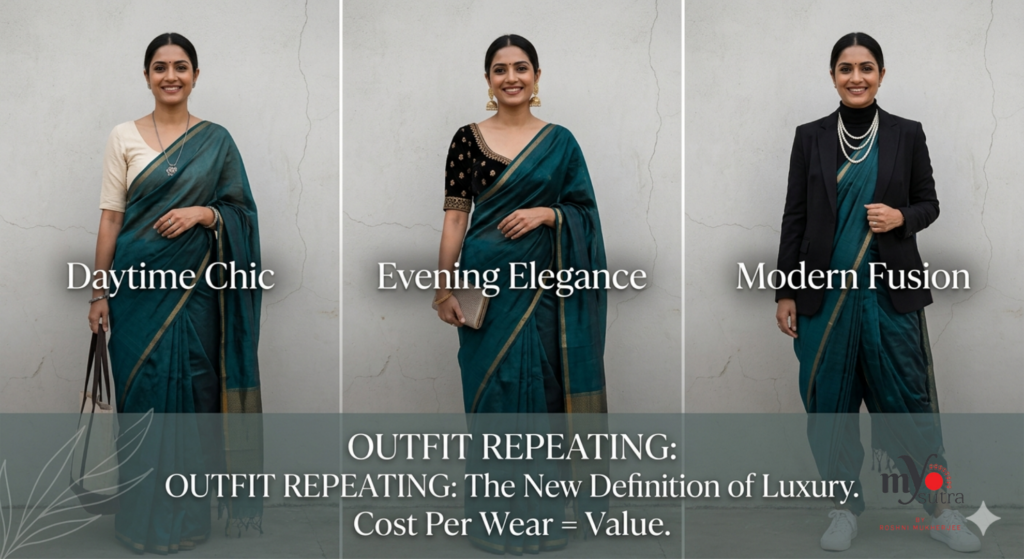 Interestingly, in Indian culture, repeating outfits was never a problem. A saree is designed to last for years—sometimes generations. It’s restyled, passed down, and worn across occasions without losing its charm.