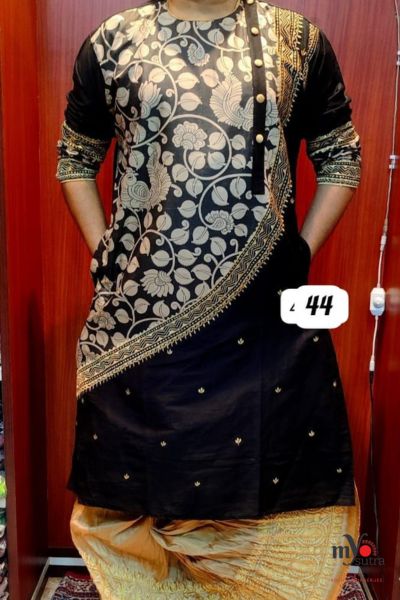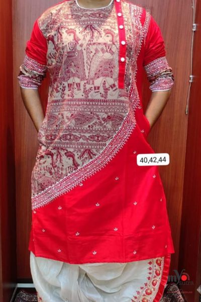 Introducing Myosutra’s Exclusive Khadi Silk Punjabi with Kalamkari & Madhubani Mix — a rare masterpiece that blends three iconic Indian art forms into one statement outfit. Crafted for those who appreciate culture and craftsmanship, this Punjabi is more than fashion — it’s wearable art.