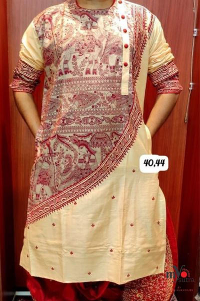 Khadi Silk Punjabi with Kalamkari & Madhubani Art