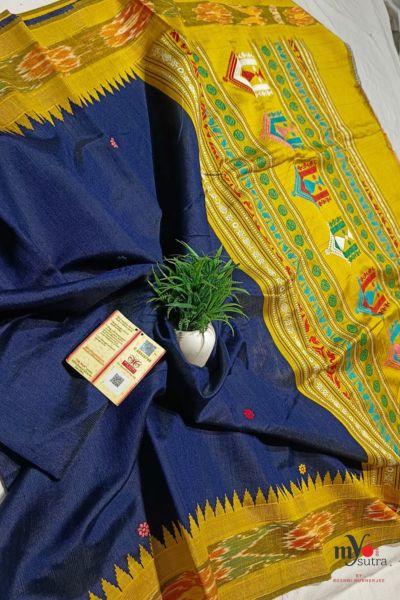 ✨ Border: Rich woven border (Sambalpuri/temple-inspired detailing)
